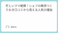 家事・育児・仕事に追われる日々の中で、「ごはんを作る時間を少しでも短縮したい」と考える人にはとても向いています。冷凍庫にストックしておけば、仕事で帰宅が遅い日でも数分で夕食が完成。買い物・調理・片付けの時間を減らせます。