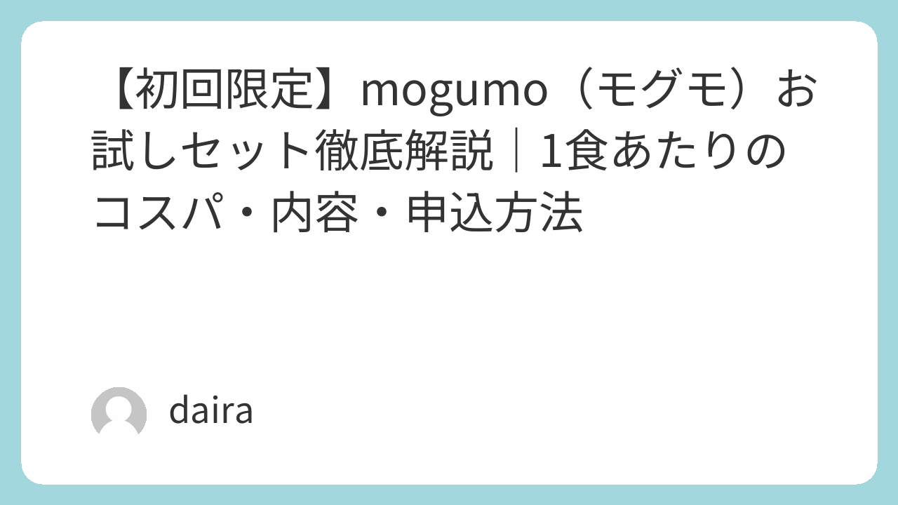 mogumo(モグモ) では、初めて利用する方向けに 「初回限定お試しセット」 を用意しています。
