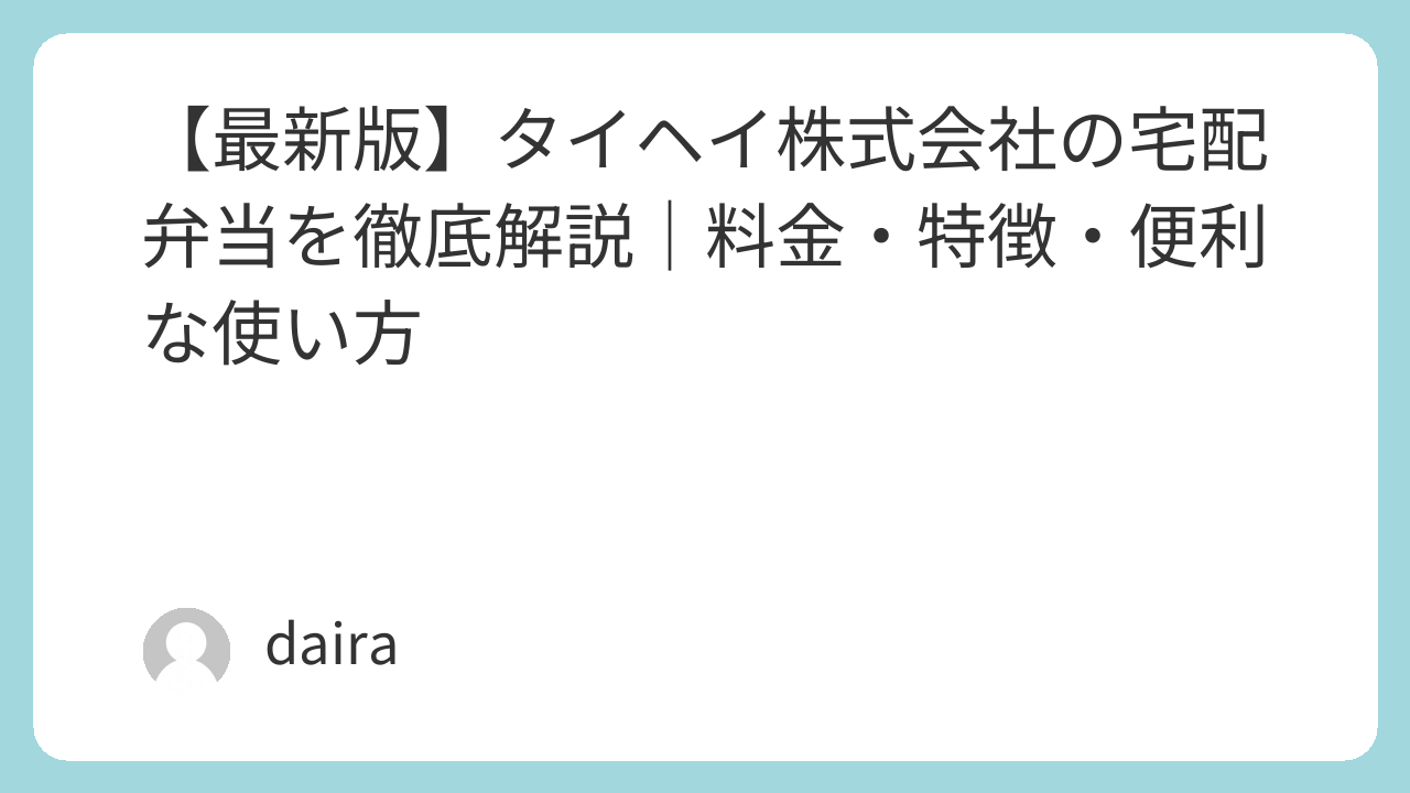 👉 「安さ」より「安心」を重視するユーザーにとって、タイヘイは強い信頼を得ている宅配弁当ブランドといえます。