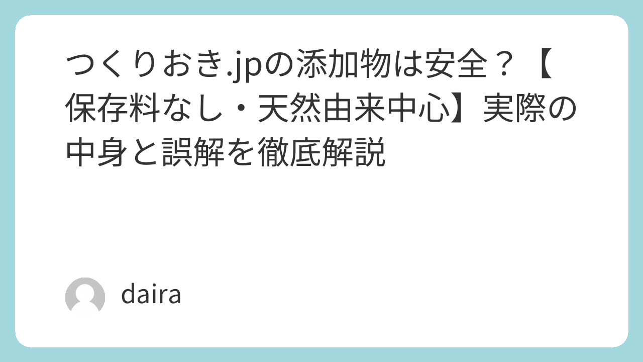 しかし実際、**つくりおき.jpは「保存料不使用」かつ「天然由来の調味料中心」**という独自の運営方針を掲げています。