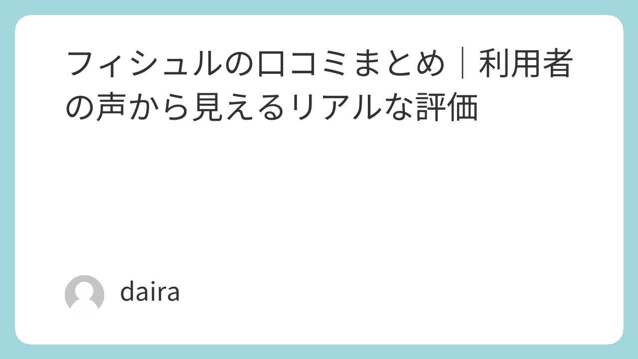フィシュルを試すか迷っている人にとって、口コミは一番参考になる情報です。