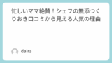 | おいしさにこだわる人 | プロの料理人がレシピを監修しており、家庭では再現しにくい味が楽しめる。 |