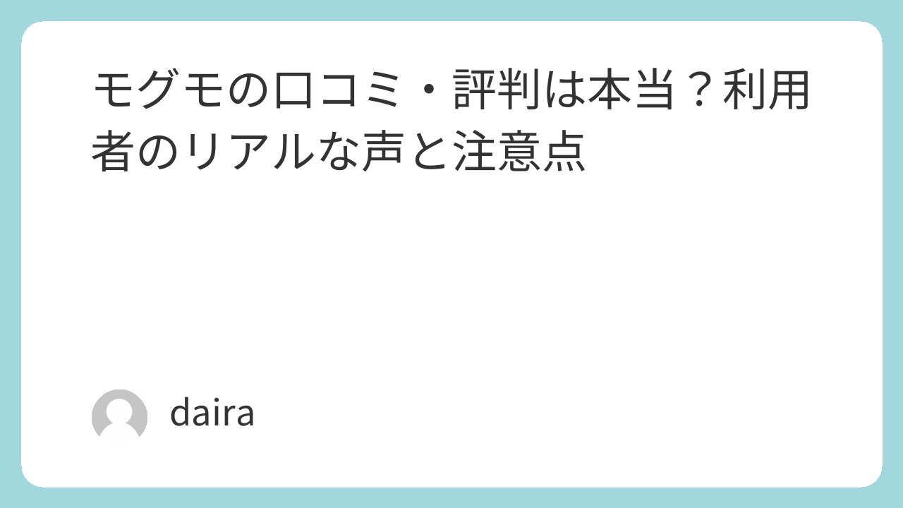 本記事では、モグモの口コミ・評判を徹底的に分析しながら👇の観点から深掘りしていきます。