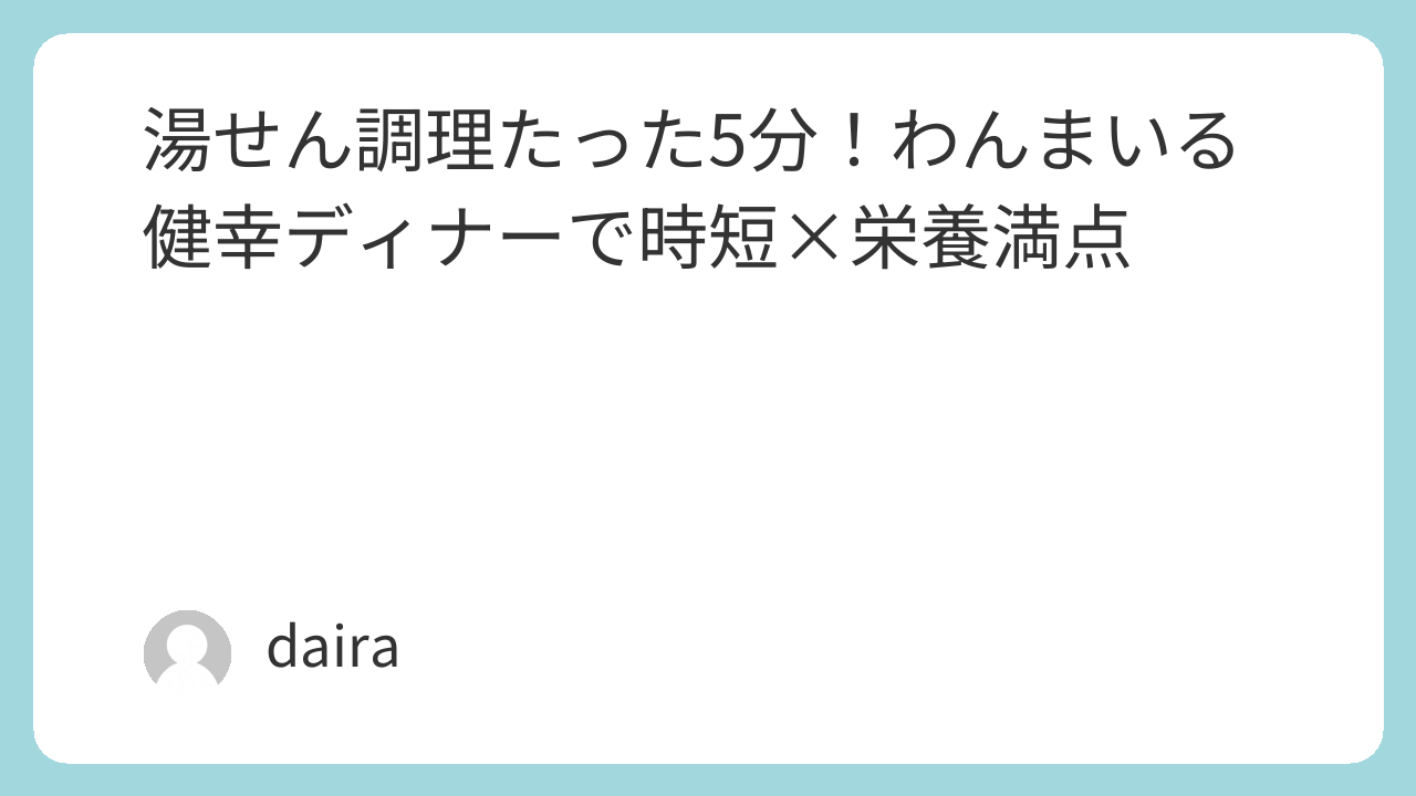 “時短 × 栄養 × 安心”の三拍子が揃った健幸ディナーは、まさに湯せん調理の理想形と言えるでしょう。