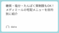 | 継続性 | レンチンで完結 | 時短&無理なく続く |