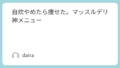 | 食リズム継続 | 夜はマッスルデリ中心 |