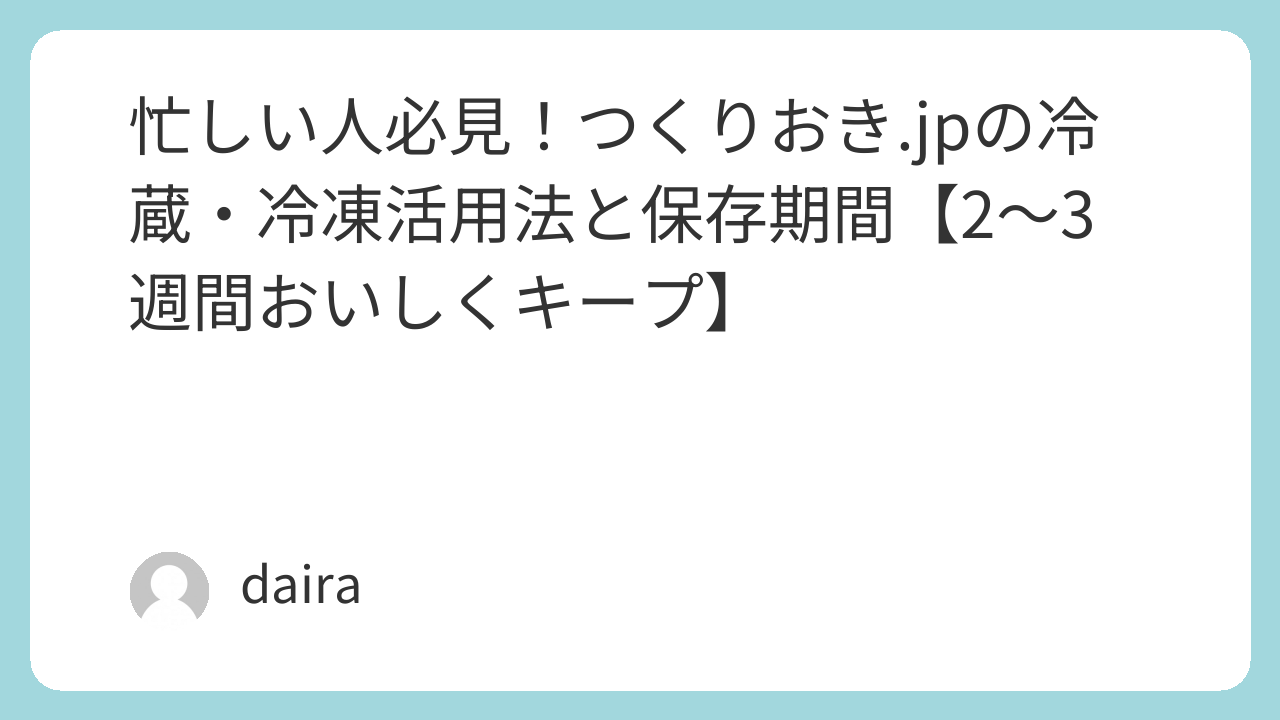 「つくりおき.jp」の料理は、冷蔵・冷凍の両方に対応しているものが多く、日持ちの仕方を理解するだけで便利さが倍増します。